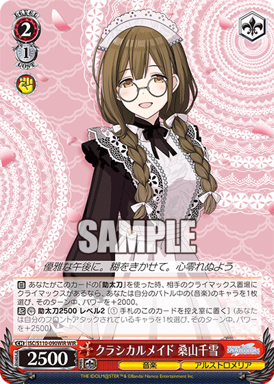 As looping 3/2 Chiyuki is the main goal of the deck, backups are essential in order to make that a guarantee. Classical Maid Chiyuki is normally a 2500 backup, but if you opponent dares to threaten Chiyuki with a climax, Chiyuki gives an additional 2000 power. Tenka is a “costless” backup that refunds her stock usage.