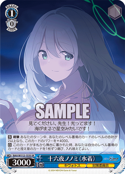 The Countermeasures Committee isn’t without their own specialized array of weapons. 0/0 Ayane acts as the logistics for the squad, providing backline support as their salvage brainstormer with a unique ability to heal the top card of your clock when you refresh if you refresh a climax or a copy of herself. Additionally, when you play a climax, you may also perform a level swap to make sure you meet your experience requirements. 0/0 Serika wielding her gun is a frontline fighter that has a double drop search ability on attack during the turn she’s played from hand. 1/0 Hoshino staring into space has an Operation Tornado ability on attack, helping you salvage a key character from your waiting room while milling your deck. 2/1 Nonomi holding a teacup and saucer is a level assist that can tap itself to empower your early game Nonomi combo while also refunding her stock cost if you have less stock than your opponent. 0/0 Nonomi staring into the danger can sacrifice herself to let you freely play any level one or lower character from hand at level one (like level one Nonomi) without paying their costs and can also mill three. Lastly, returning from the original set, 3/2 Hoshino returns as a Fumio profile that can also pump power and soul to all her friends on swing.