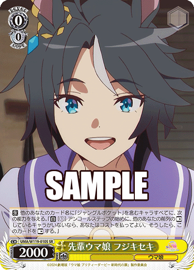 It is imperative that we fill our deck with as many characters with Jungle Pocket [ジャングルポケット] as possible. The reason for this is because Jungle Pocket’s wonderful friend and rival, Fuji Kiseki. Fuji Kiseki, especially her card shown above, are key to helping enhance our gameplay through an assortment of filters and other tools to enable our finisher. This Fuji Kiseki in particular is crucial to our gameplay, being a Riko profile that allows you to salvage any character with Jungle Pocket in its name.