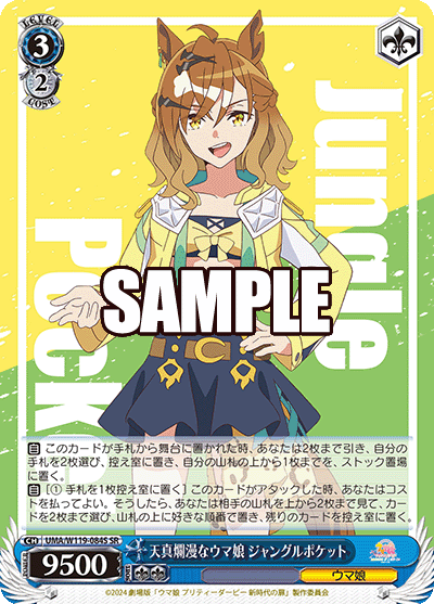 I’m going to be completely real with all of you. I have absolutely no idea what a Jungle Pocket really refers to. Now, using this English degree that I overpaid for and has never really come into any use whatsoever outside of writing funny posts about Japanese anime cards, I presume “jungle” refers to something of a wild state. It could be related to her rambunctious energy and unpredictable behaviour. A “pocket” is not only that space you find in your shorts to store snacks but a calm area of reprieve to rest yourself. So maybe her name is a contradictory title that relates to the horse’s unrivalled show on the race track with a tranquil, yet composed nature somehow hidden in the deep metaphorical jungle of madness. I honestly made this up on the fly.