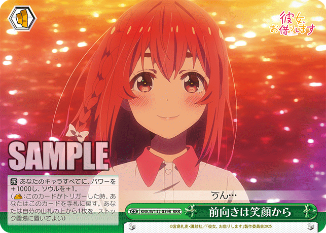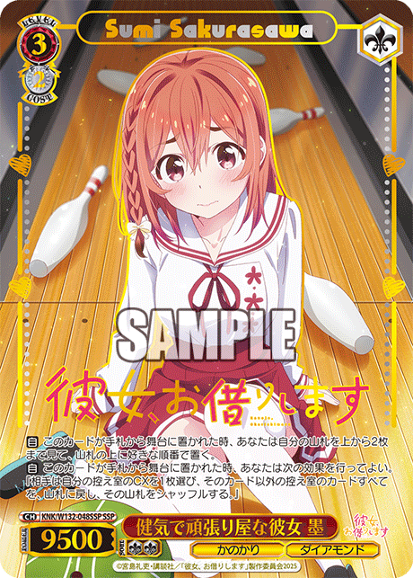You can clearly see her eyebrows here right? Sumi’s finisher looks like it has a lot of text, but it’s a rather simple design. When Sumi attacks with her climax in play, she gains cross-turn power and hexproof while also performing a Moca check on your opponent’s deck. Otherwise, when she’s sent to waiting room from stage, you can return her to hand instead and stock a character from waiting room. Simple and elegant, that’s Sumi for you.